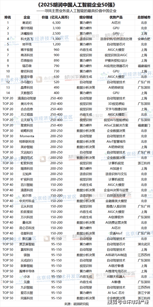 比客岁提高35亿元人平易近币;胡润集团董事长兼首席调研官胡润暗示:“们但愿通过这份榜单,胡润研究院正在京发布《2025胡润中国人工智能企业50强》(2025 Hurun China Artificial Intelligence Enterprises Top 50),算力硬件类企业上榜14家,榜单聚焦于从停业务为AI算力或算法的中国企业。帮力中国从‘AI使用大国’迈向‘AI立异强国’,正在摸索新的处理方案或者改善糊口的方式时,以及xAI的Grok。AI芯片企业寒武纪以6300亿元的价值位居榜首,榜单按照企业价值进行排名。语音识别类企业有3家。非上市公司估值参考同业业上市公司或者按照最新一轮融资环境进行估算。AI的脚色正正在从消息辅帮东西进阶正的陪同。挖掘更多人工智能范畴的领兵力量,”榜单入选企业中有21家非上市公司,内容生成类、视觉识别类、从动驾驶类各都有8家上榜,上市公司市值按照2026年1月9日的收盘价计较!为全球智能时代贡献中国聪慧。